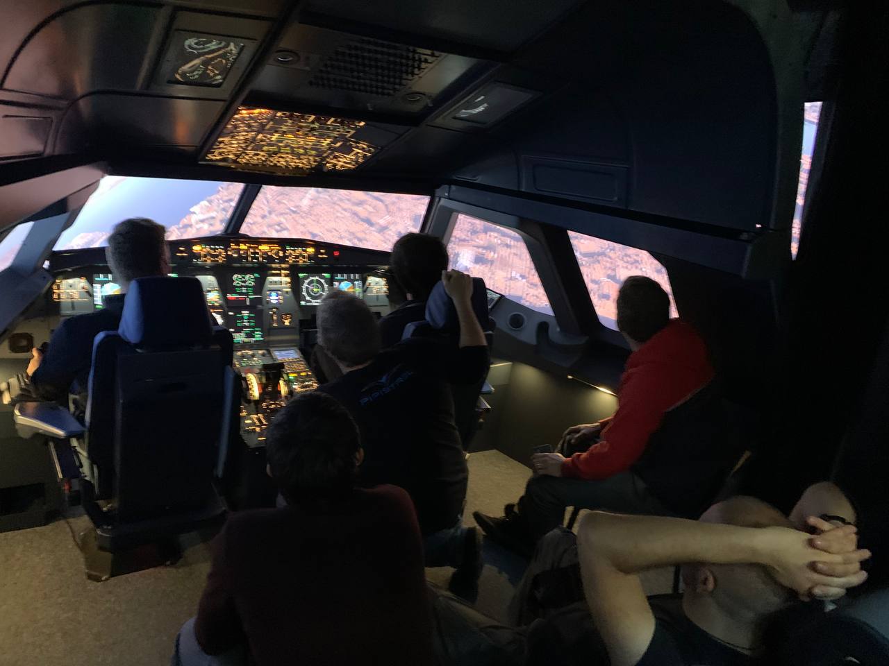 Das Innere des Boeing 737 Simulators, Pilotensitze, alle Tasten und Displays wiederholen die reale Kabine. Alle virtuellen Flugzeugsysteme funktionieren genauso wie echte, so dass jeder Pilot wie Sie die Realität des Fluges erleben kann.